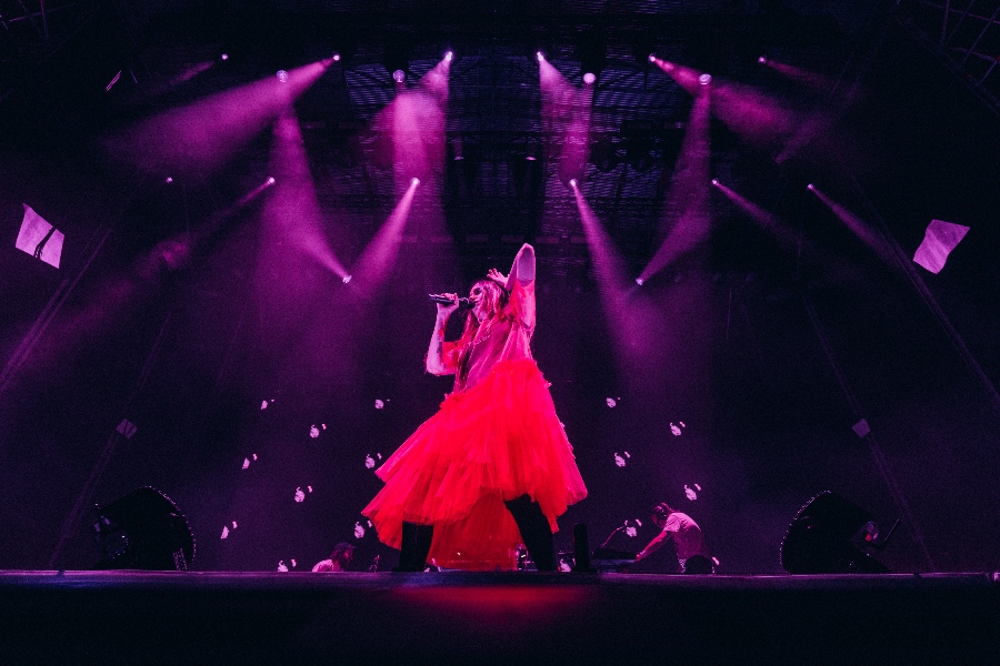 El mismo razonamiento se aplica al pase de Zahara, que ofrece un concierto escenográficamente muy cuidado y original, en el que no dejan de pasar cosas. Zahara reproduce la coreografía de señas de las azafatas de vuelo, recrea un partido de boxeo aferrada a unas toallas de color fucsia, desfila en una cinta de correr en ‘Tus michis’ y, en el mejor momento del show, saca al escenario el policlín que protagoniza la portada de ‘Lento Ternura’, el disco que presenta. Desde ahí dentro, Zahara interpreta a la guitarra su versión de ‘Zahara’ de Judeline fusionada con ‘Con las ganas’. La apropiación de Zahara del policlín, símbolo festivalero, es arte con todas las letras.