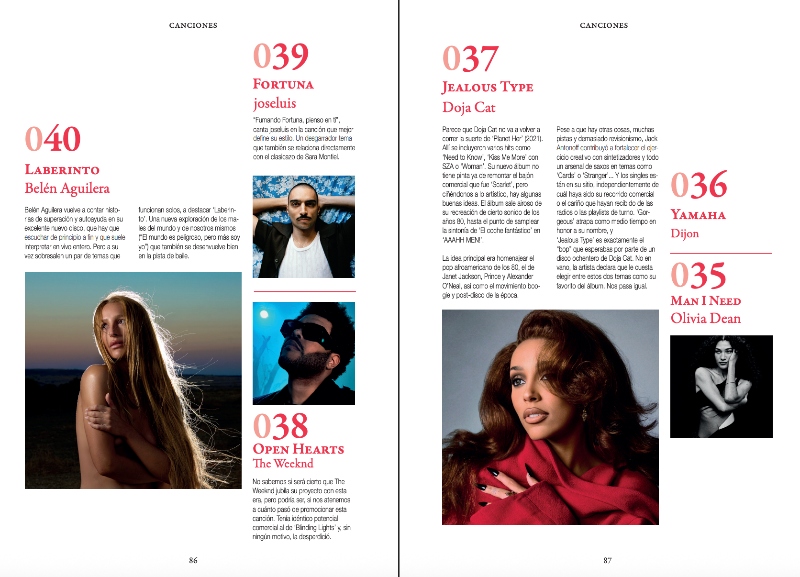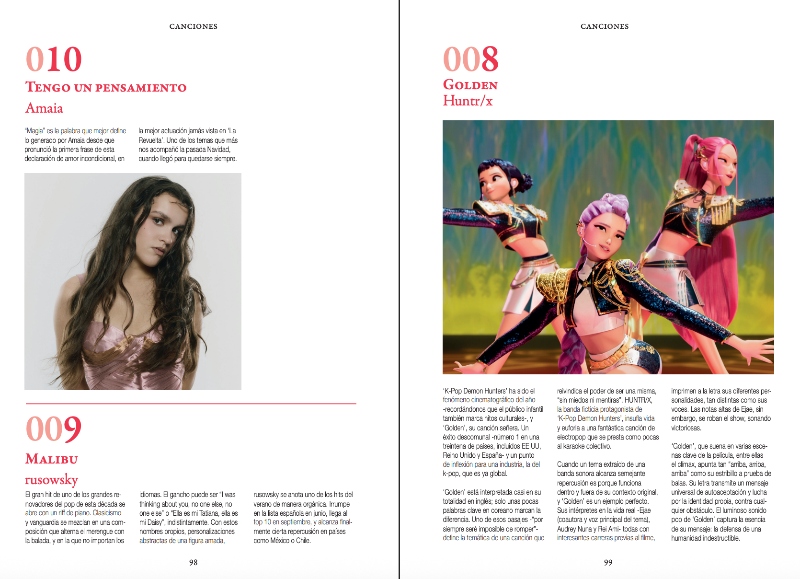 En un año que ha empezado y terminado a lo grande, con lanzamientos de Bad Bunny y Rosalía, no es ninguna sorpresa que ambos ocupen lugares privilegiados en las dos listas. El top 10 de canciones los incluye en posiciones destacadas, y también se compone de éxitos del pop tanto nacionales (‘Malibu’) como internacionales (‘Abracadabra’). No olvidamos ‘Tengo un pensamiento’ de Amaia, que acaba de cumplir un año: la lista va del 1 de diciembre dal 30 de noviembre.