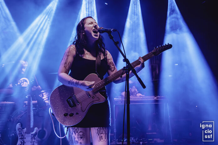 Y nos movimos y chillamos y exorcizamos nuestros demonios con canciones como la maravillosa ‘Quarry’, en la que varias personas entre el público comenzaron a hacer crowdsurfing. Hartzman contó que acababan de estar en gira por Asia y por los países escandinavos, y que allí la gente, aunque hicieran “mosh pits”, era más reservada, mientras que aquí estaba encantada porque no tenía ni que pedirlo. Eso sí, al ver que el ambiente se hacía cada vez más punk, la cantante invitó a quien quisiera meterse en el pogo y bailar a lo loco hacia delante y a quien no, que se echara hacia los lados. Lo más importante para ella era que nadie se hiciera daño y que todo el mundo se lo pasara bien.