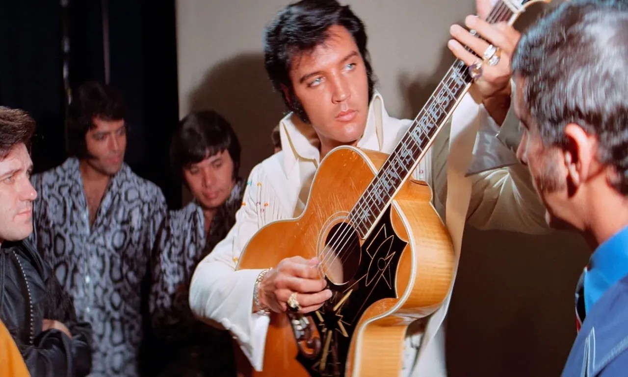 Por eso produce casi euforia ver a Elvis llegando al primer ensayo en Las Vegas –enfundado en una camisa psicodélica con verdes y púrpuras con un brillo propio casi sobrenatural– emanando carisma por cada poro de su cuerpo, y presenciar su primer contacto con esa grandiosa banda de músicos, ver cómo conectan. Porque si ‘EPiC: Elvis Presley in Concert’ retrata una relación (incluso un romance) es claramente el de la banda con Elvis, y viceversa, y es algo precioso de ver. Desde los primeros ensayos asistimos a una conexión casi química entre todos ellos: la precisión matemática y electrizante de James Burton con su Telecaster, el corazón rítmico espectacular de Ronnie Tutt, la complicidad con las Sweet Inspirations y el resto de vocalistas de apoyo… entre sonrisas y bromas, todo el mundo parece feliz y a la vez consciente de que están creando algo mayor que la suma de sus partes.