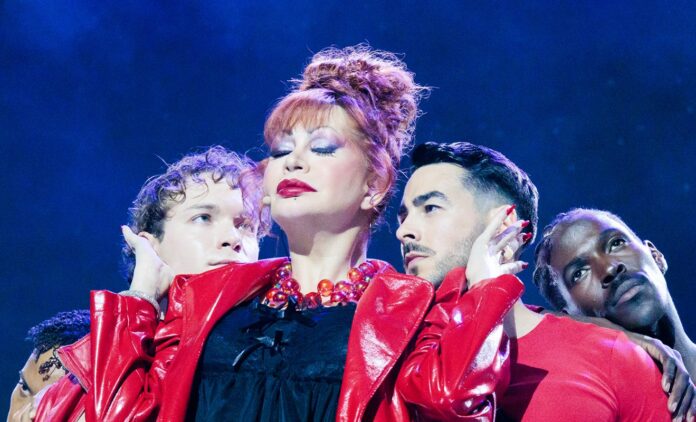 Una multitud de bailarines saltaba a las tablas desde el backstage y el foso ya durante esa intro en la que se repasaban críticas realizadas a Yurena. Después, veríamos a otra decena de personas formando una «Yure-ball» para el vogueo, e incluso a un enorme coro entonar ‘No cambié’.