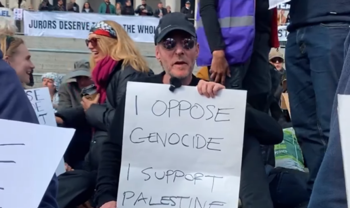 He was amongst hundreds of protestors arrested for holding signs which say "I oppose genocide – I support Palestine Action".